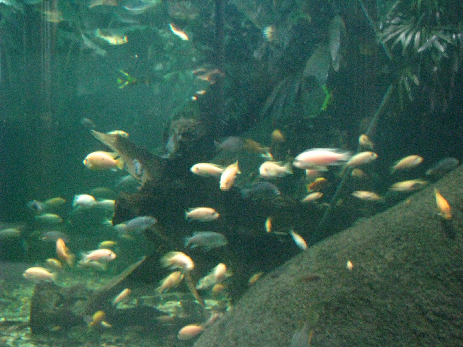 Kaplanlardan zar zor ayrildiktan sonra ilerideki akvaryum gibi yere yoneldik. Suyun icindeki rengaren baliklarin yani sira iki adet minik Hipopotam'da vardi.
