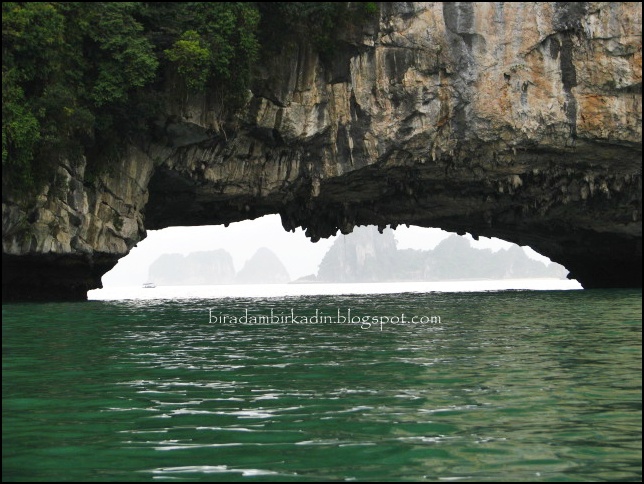 Kanolara bindikten sonra, tum grup toplamda 5 kano ile tur rehberinin onderliginde cevredeki magaralari gezmeye basladik. Oldukca genis, tunel gibi bir gecitten gecip adalarin arasinda kalmis golet gibi bir yere ciktik. Sanki birden bire bir gizli bahceye girmis gibi olduk. Heryer inanilmaz sessizdi, sadece hayvanlarin ve doganin sesi duyuluyordu. Tabii kanoda islanir, hatta dusebilir diye fotograf makinami yanima almadigimi oldukca uzuldum. Bir sure o golette gezindikten sonra baska bir tunel ile koyun bir diger kismina gectik.